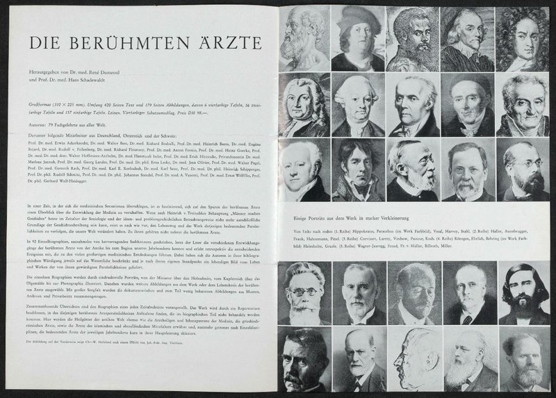 Eine Broschüre für das Buch: Die berühmten Ärzte, hg. von Rene Dumesnil, Köln 1966. Das Gemälde wurde von Johann Friedrich August Tischbein angefertigt. Neg. III. 100/3 Neg. (9x12) 337