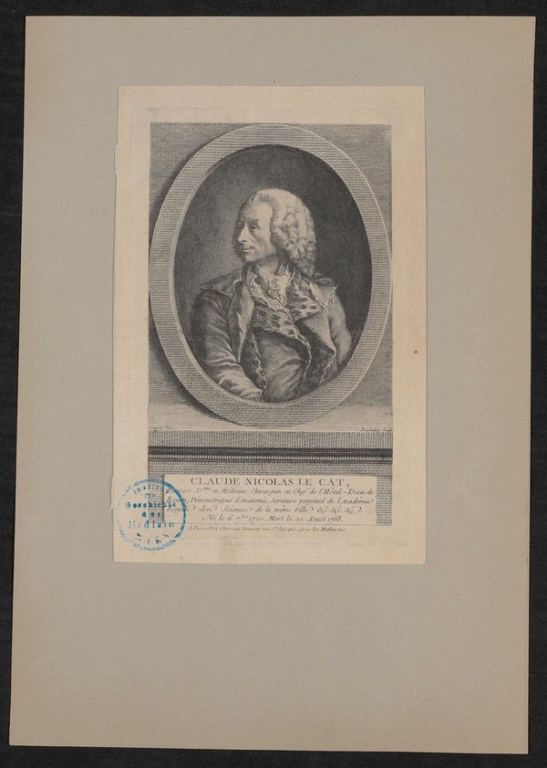 Der Kupferstich ist von Jacques Bacheley auf Grundlage eines Gemäldes von N. Dupont angefertigt worden. Vorderseitig mit einem Stempel des Instituts für Geschichte der Medizin, Wien, versehen.