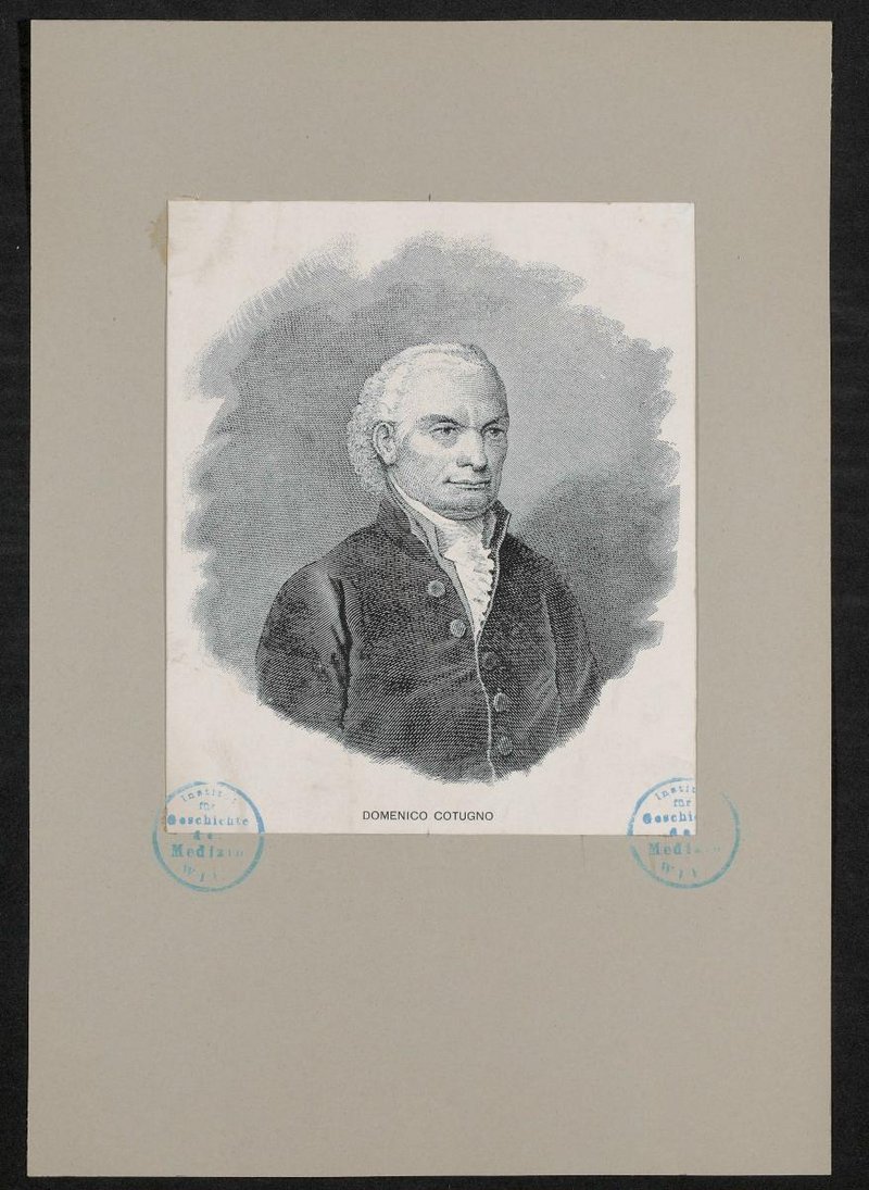 Nachdruck einer Lithografie nach einem Kupferstich von Antonio Locatelli. Vorderseitig mit zwei Stempeln des Institutes für Geschichte der Medizin, Wien, versehen. Neg I 204/13, 14
