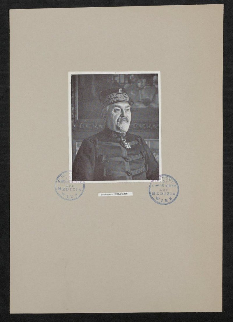 Ausschnitt vermutlich aus der französischsprachigen Zeitschrift: V. Deschiens, Les grandes figures médicales contemporaines, Paris. Vorderseitig mit zwei Stempeln des Institutes für Geschichte der Medizin, Wien, versehen.