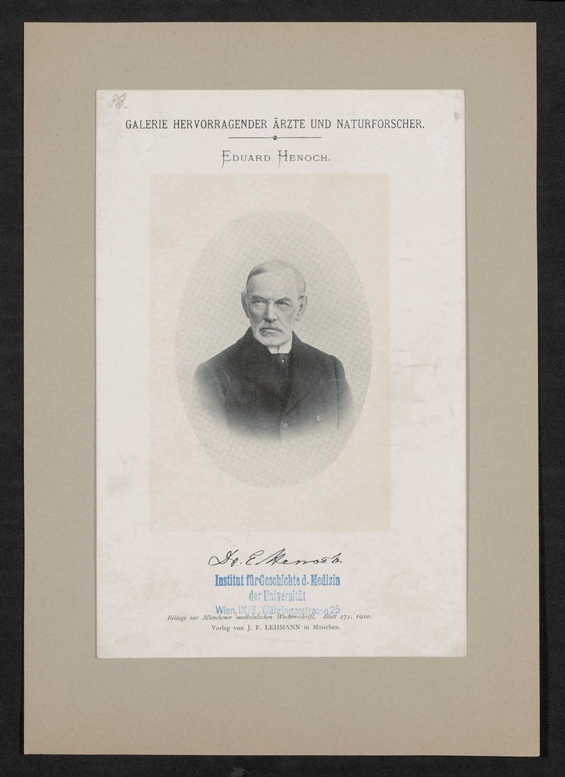 Auszug aus: Galerie hervorragender Ärzte und Naturforscher, in: Beilage zur Münchener medizinischen Wochenschrift, 1910, Bl. 271. Das Bild wurde von Julius Friedrich Lehmann verlegt. Vorderseitig mit einem Stempel des Institutes für Geschichte der Medizin, Wien, versehen.