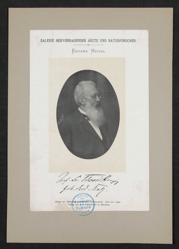 Auszug aus: Galerie hervorragender Ärzte und Naturforscher, in: Beilage zur Münchener medizinischen Wochenschrift, 1907, Bl. 215. Vorderseitig mit einem Stempel des Instituts für Geschichte der Medizin, Wien, versehen.