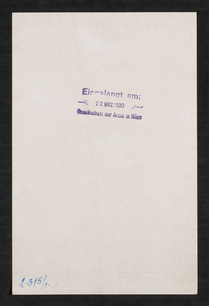 Auszug aus: Galerie hervorragender Ärzte und Naturforscher, in: Beilage zur Münchener medizinischen Wochenschrift, 1930, Bl. 444. Mit Eingangsstempel der Gesellschaft der Ärzte, Wien, auf der Rückseite.