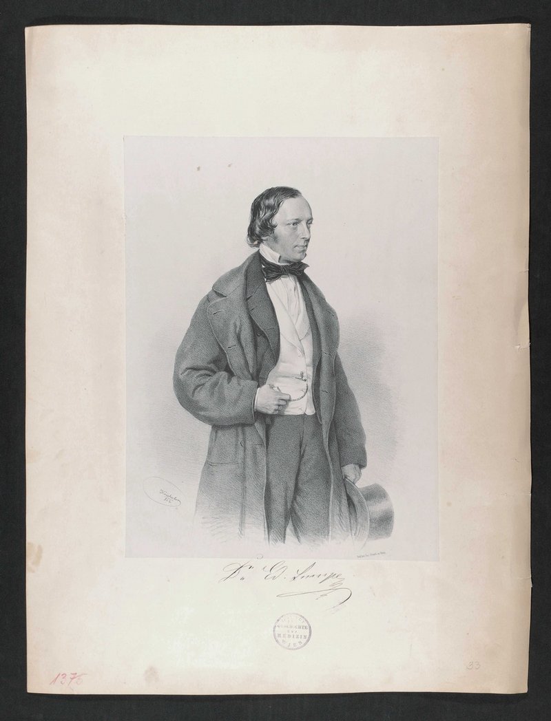 Das Porträt ist auf Basis einer, von Josef Kriehuber gezeichneten Vorlage, von Joseph Stoufs angefertigt worden. Vorderseitig mit einem Stempel des Instituts für Geschichte der Medizin, Wien, versehen.
