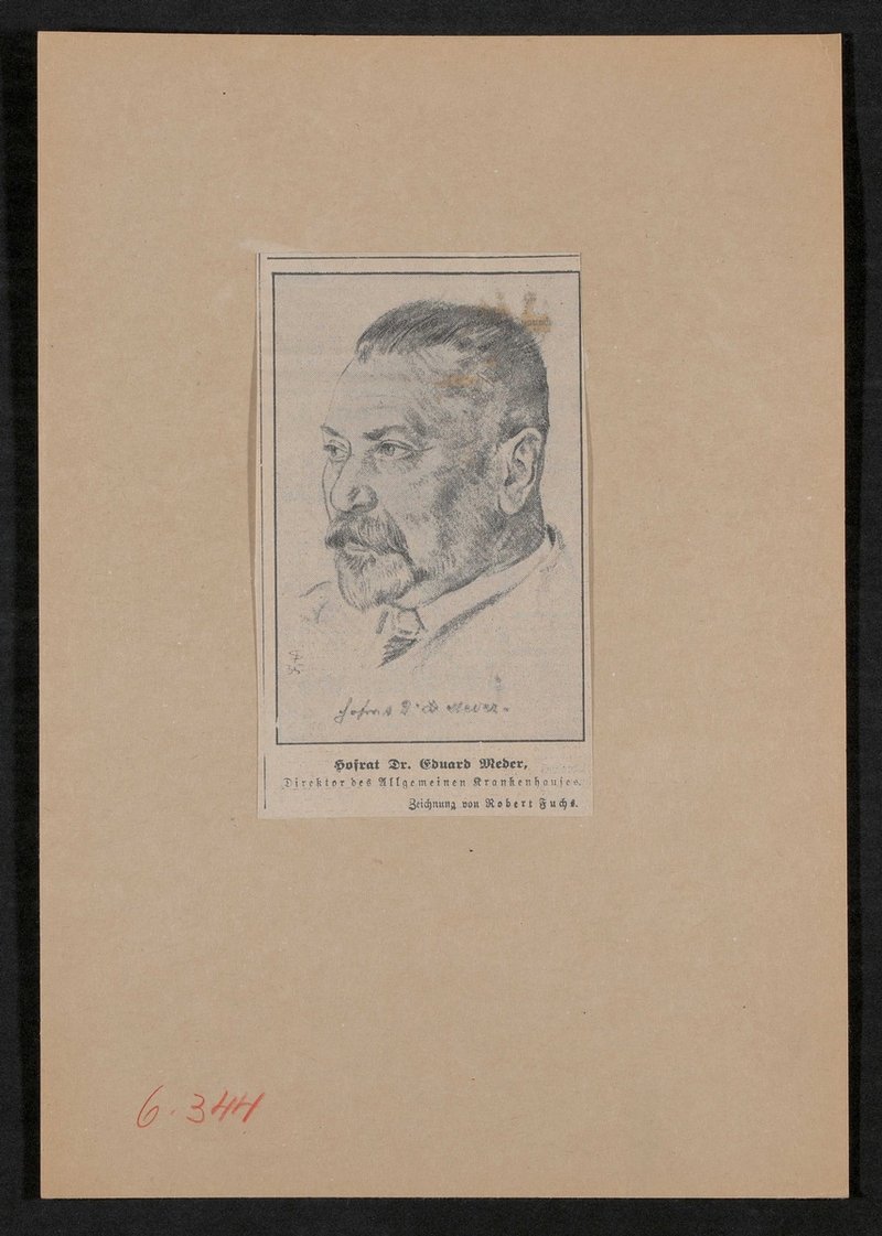 Reproduzierter Zeitungsausschnitt nach einer Zeichnung von Robert Fuchs, Wien.