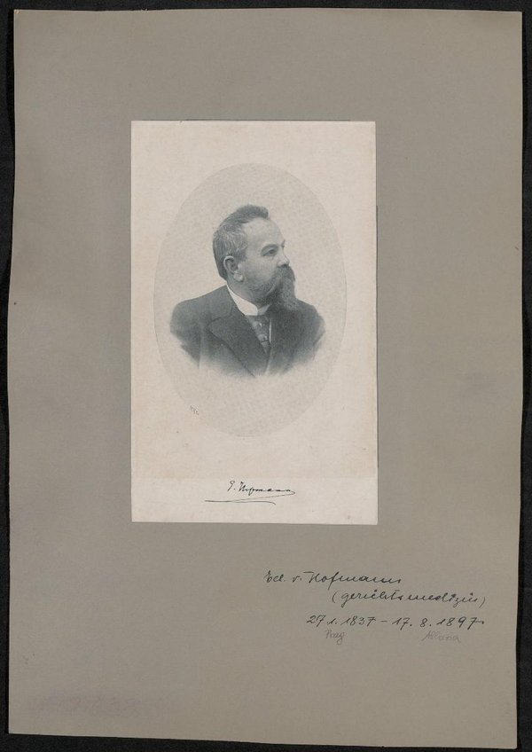 Auszug aus: Galerie hervorragender Ärzte und Naturforscher, in: Beilage zur Münchener medizinischen Wochenschrift, 1897, Bl. 75. Auf der Rückseite befindet sich ein Porträt einer unbekannten Person, vermutlich ebenfalls aus: Galerie hervorragender Ärzte und Naturforscher