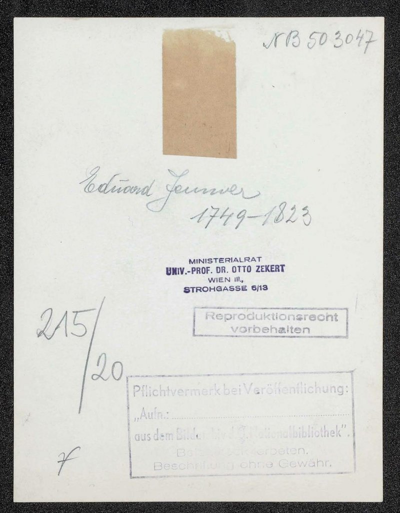 Die Fotografie stammt aus dem Bildarchiv der Österreichischen Nationalbibliothek in Wien, Wien, aus dem Nachlass von Otto Zekert. Die Vorlage war eine Lithografie.