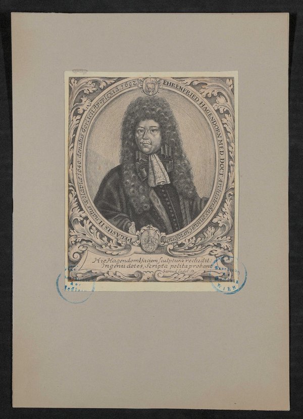 Auf der Vorderseite befinden sich zwei Stempel des Instituts für Geschichte der Medizin, Wien.