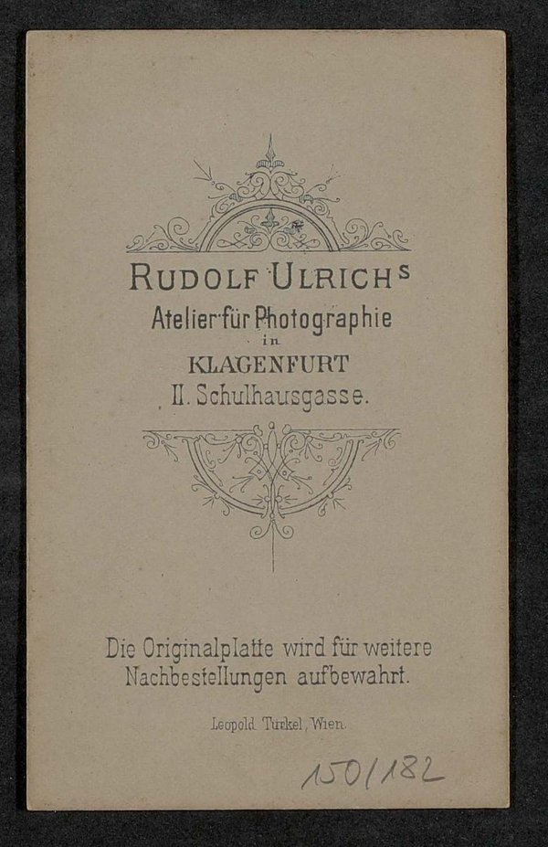 Die Fotografie wurde von Rudolf Ulrich, Atelier für Photographie, Klagenfurt, angefertigt.