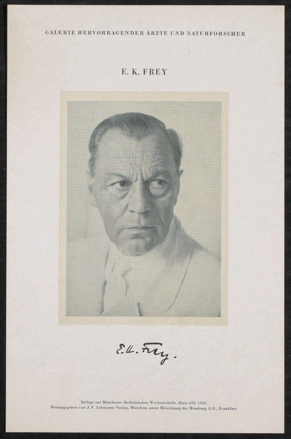 Auszug aus: Galerie hervorragender Ärzte und Naturforscher, in: Beilage zur Münchener medizinischen Wochenschrift, 1958, Bl. 639.