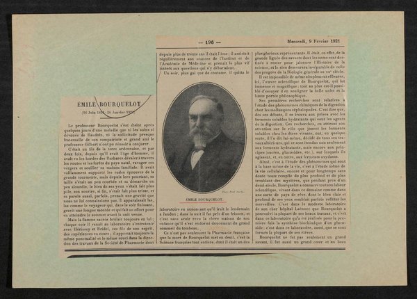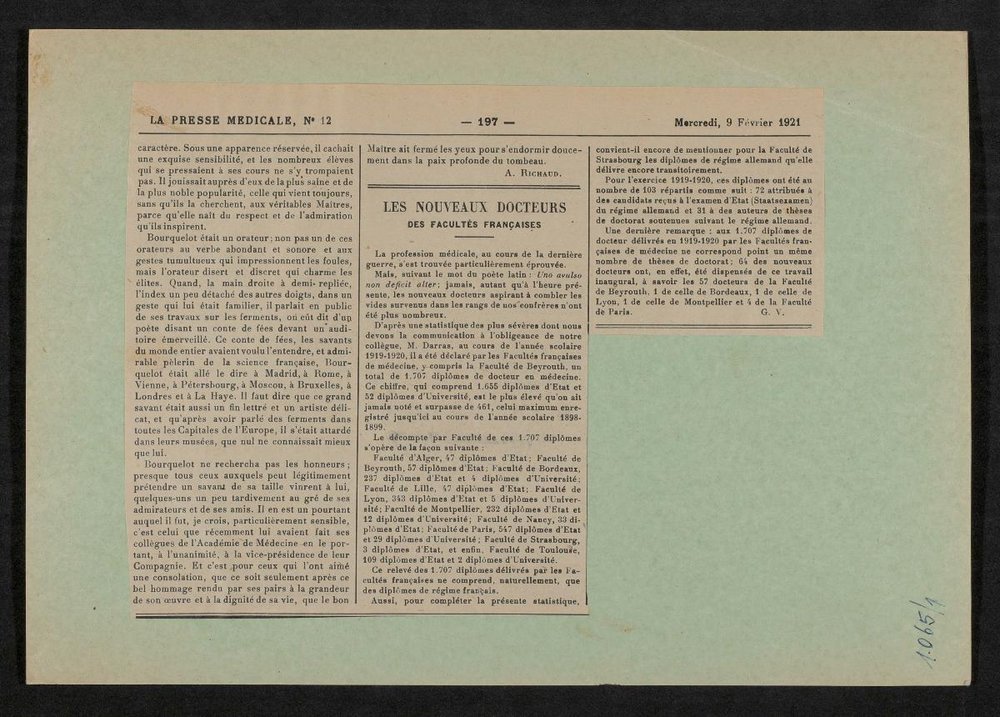 Ausschnitt aus: La Presse Medicale, Nr. 12, 09.02.1921, S. 196-197. Die Vorlage wurde von Paul Darby angefertigt.