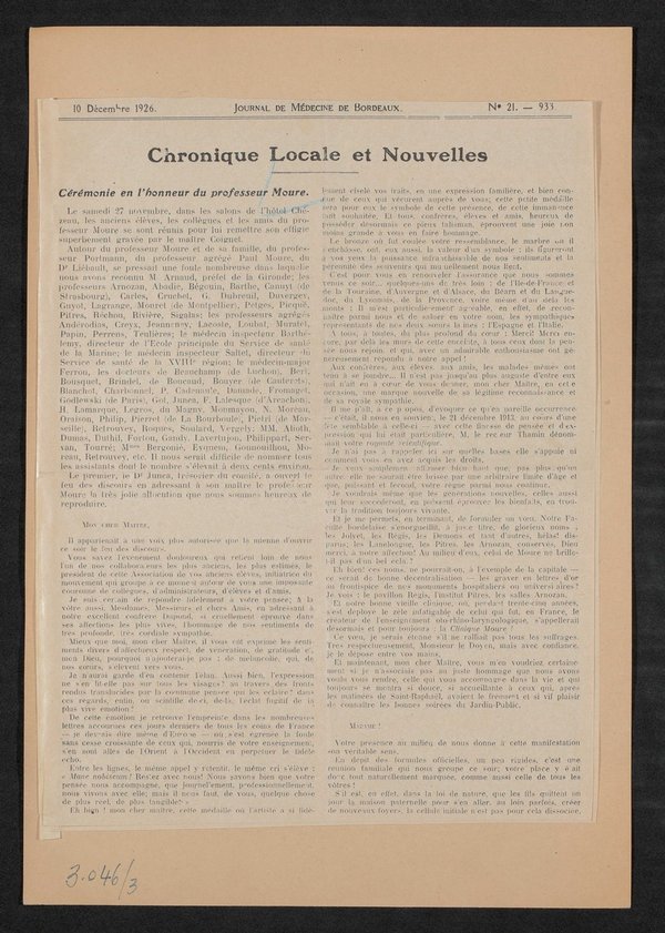 Ausschnitt aus: Journal de Medicine de Bordeaux, Nr. 45, 1913.