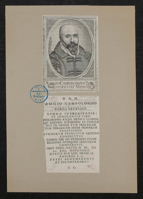 Vorderseitig mit einem Stempel des Instituts für Geschichte der Medizin, Wien, versehen.