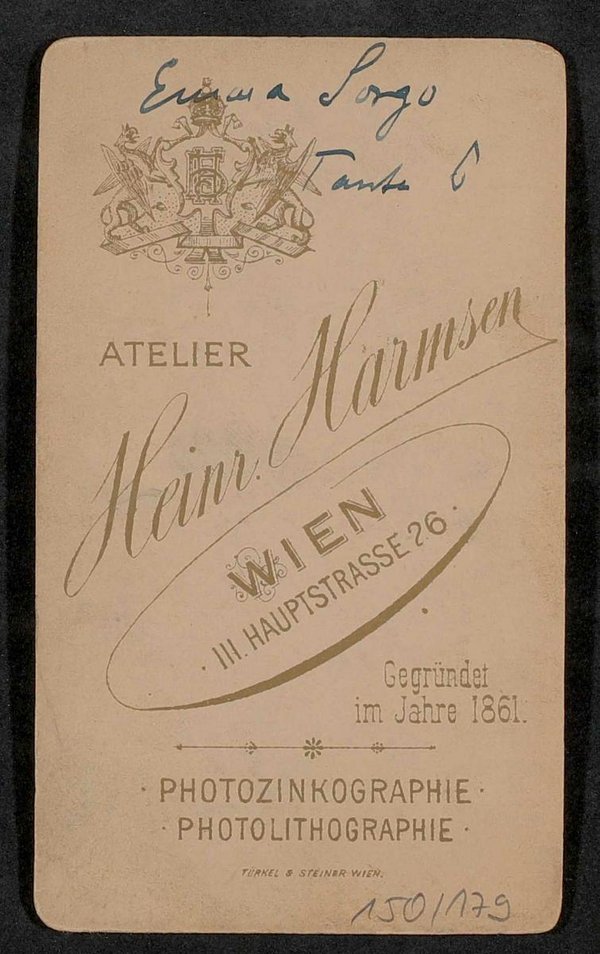 Die Fotografie wurde von Heinrich Harmsen, Atelier, Wien, angefertigt.