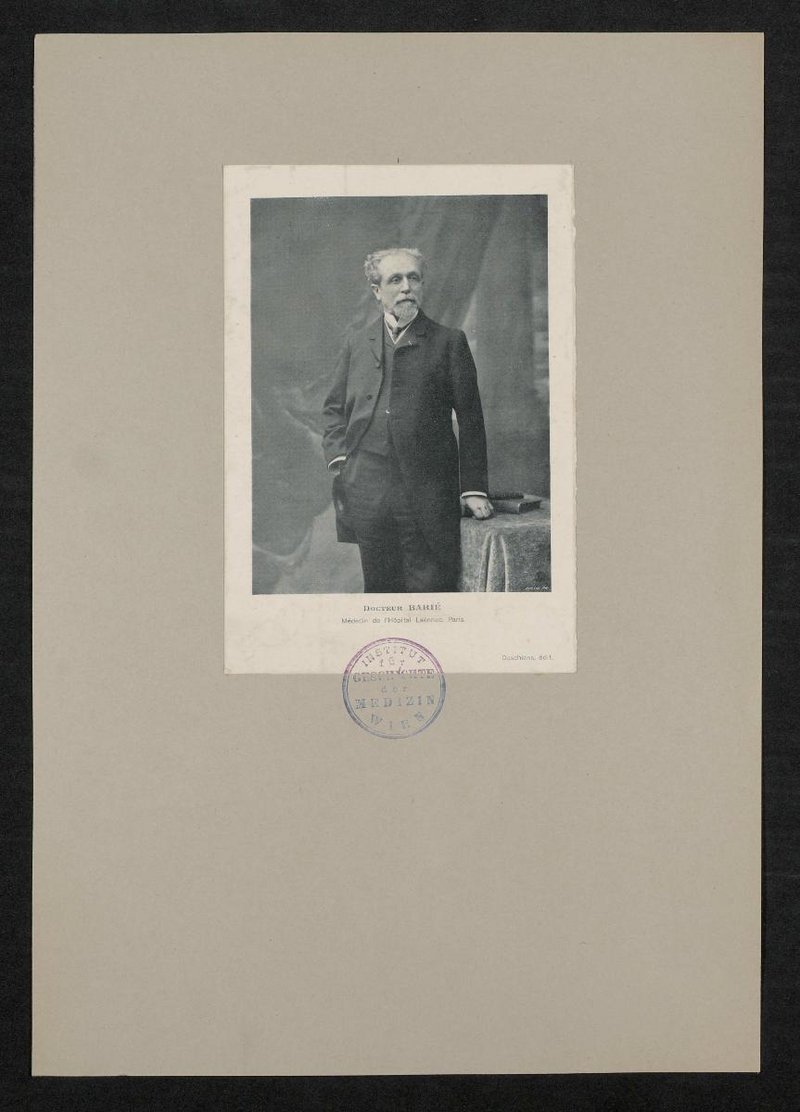 Die fotografische Vorlage wurde von Eugene Pirou, Paris, angefertigt und von Deschiens gedruckt. Vorderseitig mit einem Stempel des Instituts für Geschichte der Medizin, Wien, versehen.