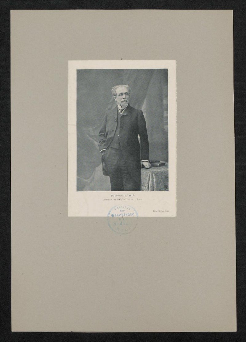 Die fotografische Vorlage wurde von Eugene Pirou, Paris, angefertigt und von Deschiens gedruckt. Vorderseitig mit einem Stempel des Instituts für Geschichte der Medizin, Wien, versehen.