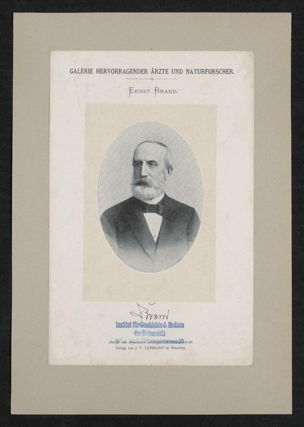 Auszug aus: Galerie hervorragender Ärzte und Naturforscher, in: Beilage zur Münchener medizinischen Wochenschrift. Unter dem Bild befindet sich ein Stempel des Institutes für Geschichte der Medizin, Wien.