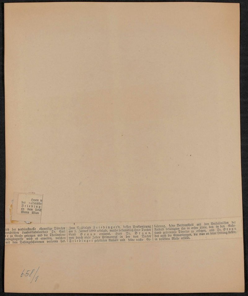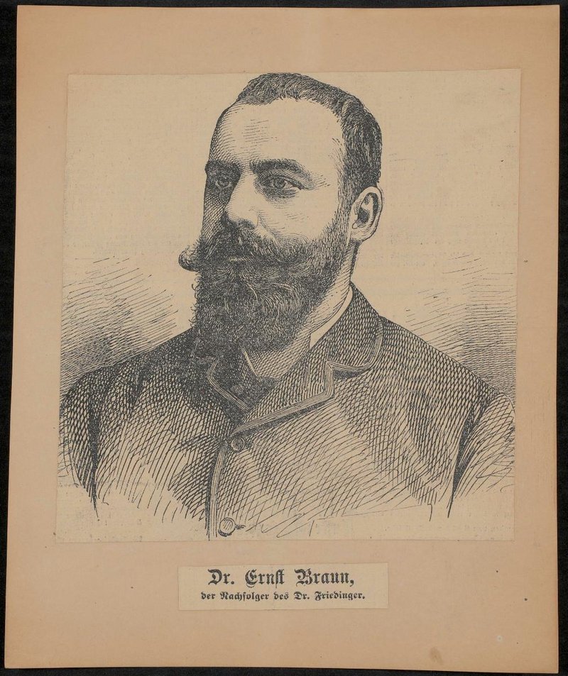 Ausschnitt aus einem Nachruf für Ernst Braun. Der dazugehörige Text ist auf der Rückseite angebracht. Die Vorlage des Bildes war eine Zeichnung.
