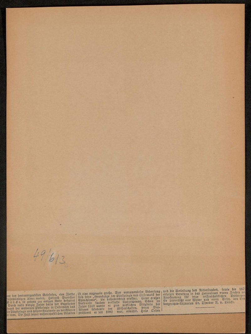 Die Grafik wurde aus einem Zeitungsbericht ausgeschnitten. Der dazugehörige Artikel zum Tod von Brücke befindet sich auf der Rückseite.