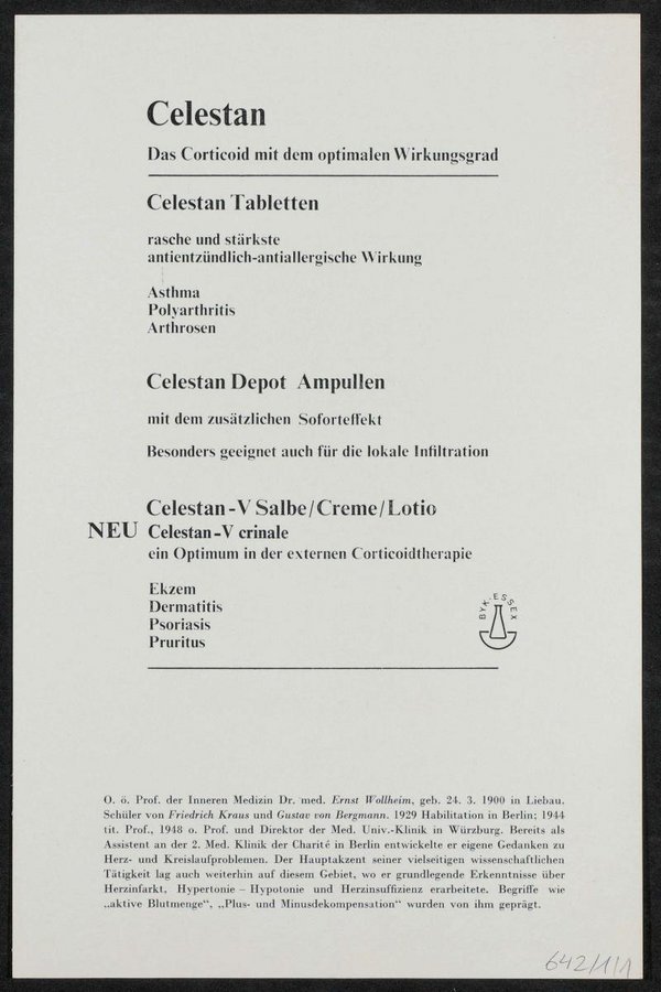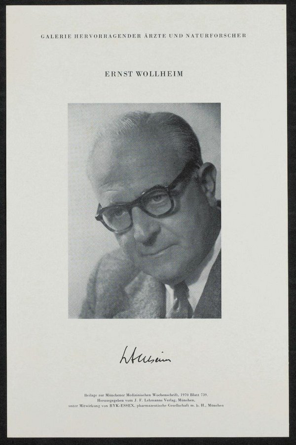 Auszug aus: Galerie hervorragender Ärzte und Naturforscher, in: Beilage zur Münchener medizinischen Wochenschrift, 1970, Bl. 739. Mit lebensgeschichtlichen Angaben und Werbung für ein medizinisches Präparat auf der Rückseite.