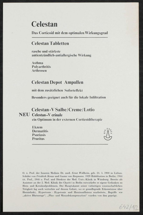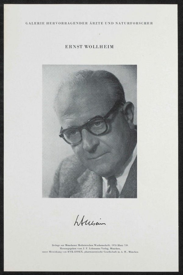 Auszug aus: Galerie hervorragender Ärzte und Naturforscher, in: Beilage zur Münchener medizinischen Wochenschrift, 1970, Bl. 739. Mit lebensgeschichtlichen Angaben und Werbung für ein medizinisches Präparat auf der Rückseite.