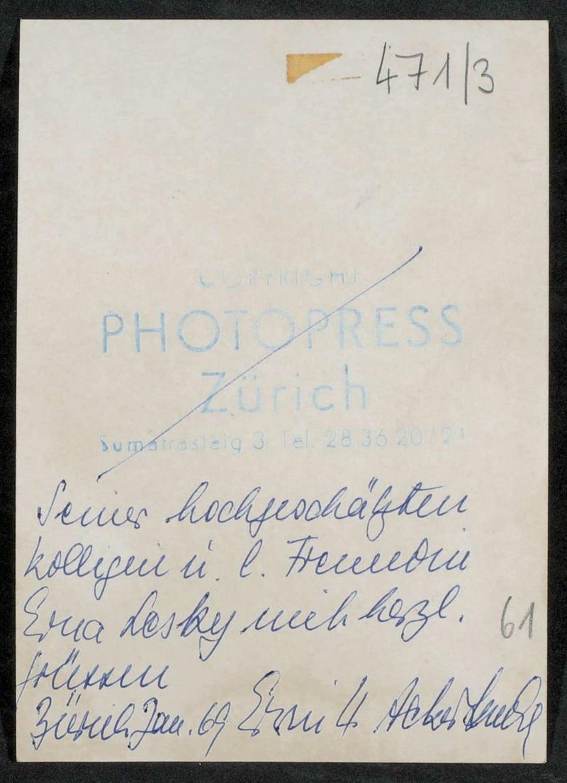 Eigenhändige Beschriftung durch Ackerknecht auf der Rückseite.