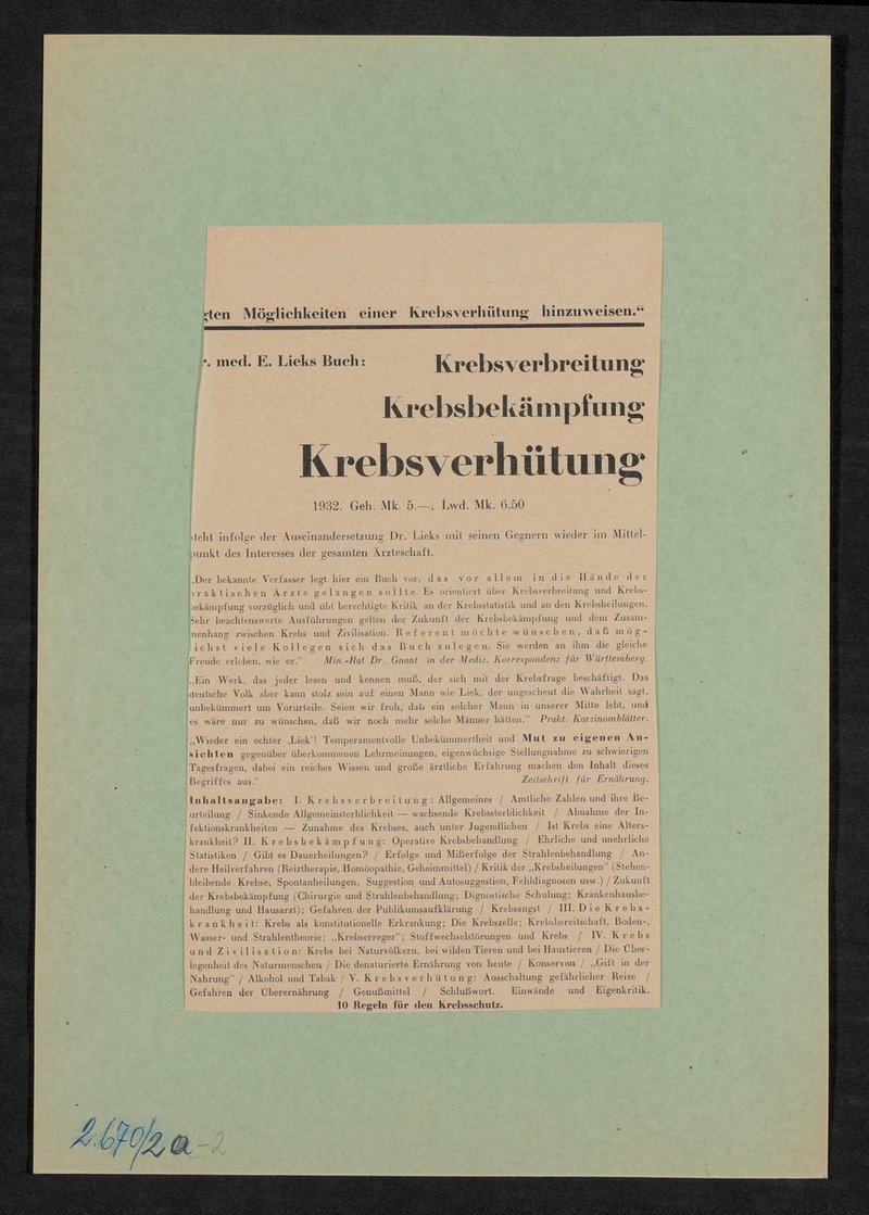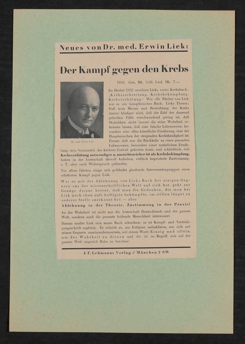 Porträt und Werbung sind vermutlich einer Ausgabe der Münchener Medizinischen Wochenschrift, 1934, entnommen worden.