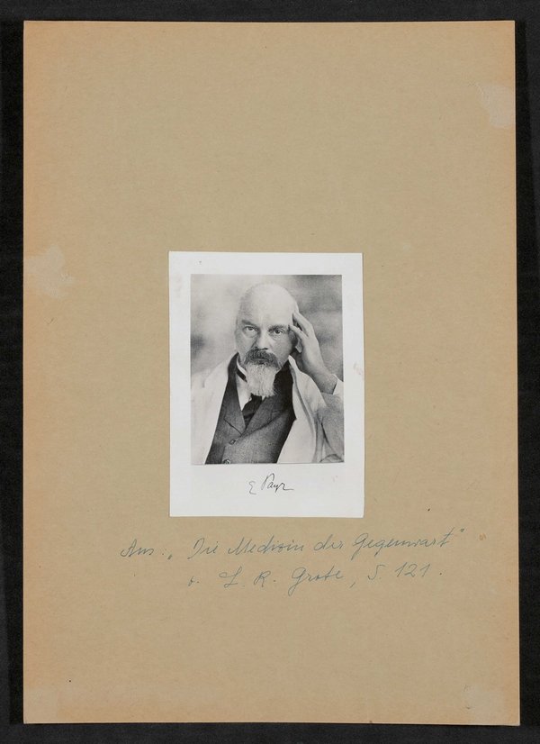 Die Vorlage befindet sich in: Die Medizin der Gegenwart in Selbstdarstellungen, Louis Ruyter Radcliffe Grote, F. Meiner Verlag, Leipzig 1923, S. 121.