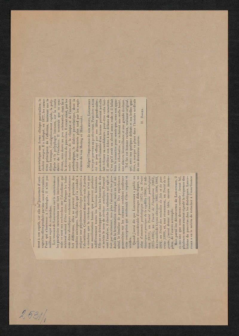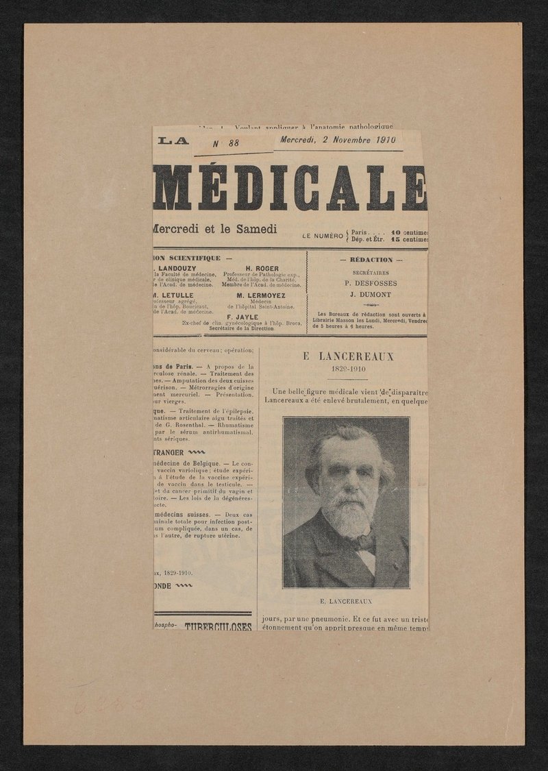 Bild und Nachruf sind der französischsprachigen Fachzeitschrift La Vie Medicale, Nr. 88, 2. November 1910, entnommen worden.