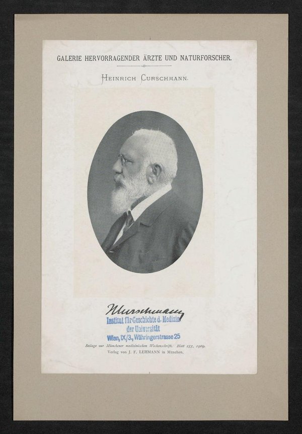 Auszug aus: Galerie hervorragender Ärzte und Naturforscher, in: Beilage zur Münchener medizinischen Wochenschrift, München 1908, Bl. 230.