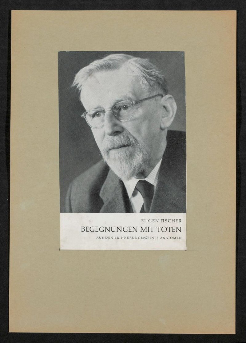 Ausschnitt aus einer Ankündigung der Publikation: Begegnung mit Toten. Aus den Erinnerungen eines Anatomen, Freiburg im Breisgau 1959.