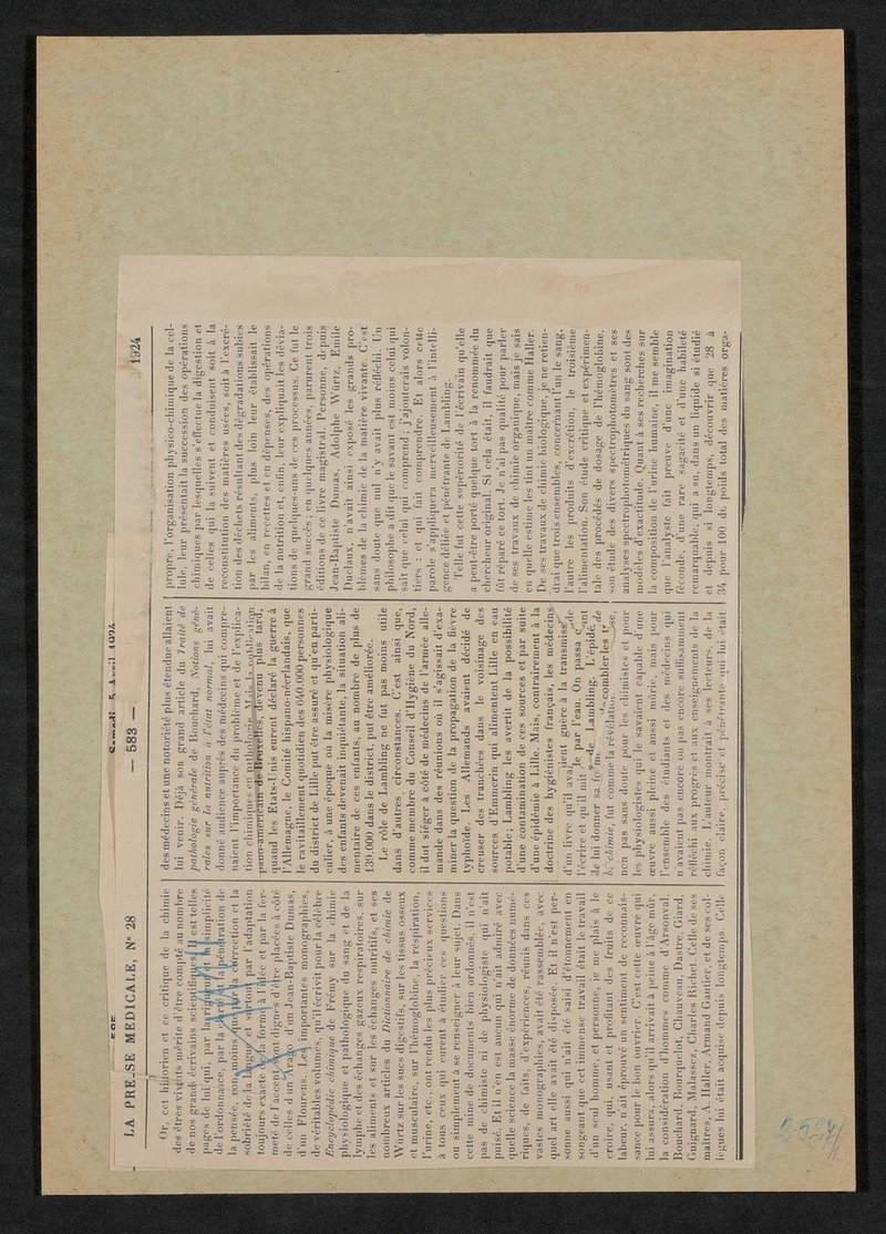 Auszug aus: La Presse Medicale, Nr. 28, 5. April 1924, S. 583-585.