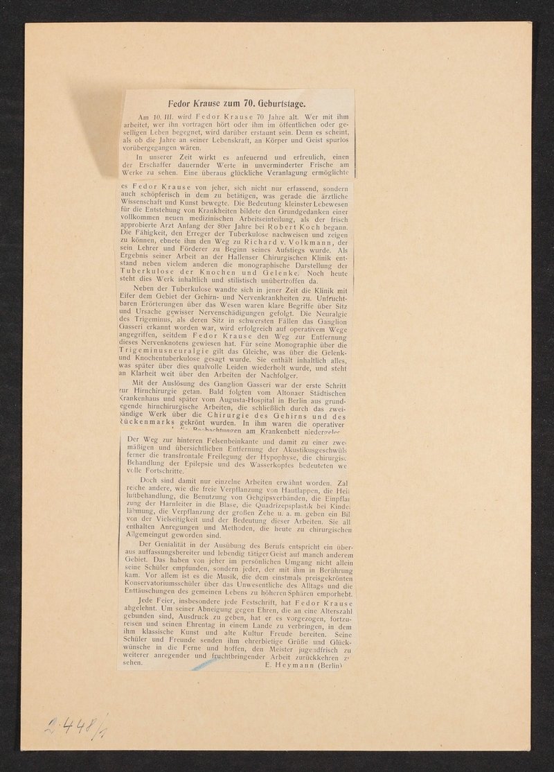 Bild und Bericht sind der Deutschen Medizinischen Wochenschrift, März 1927, entnommen worden. Die dem Bild zugrundeliegende Fotografie stammte von Rudolf Dührkoop.