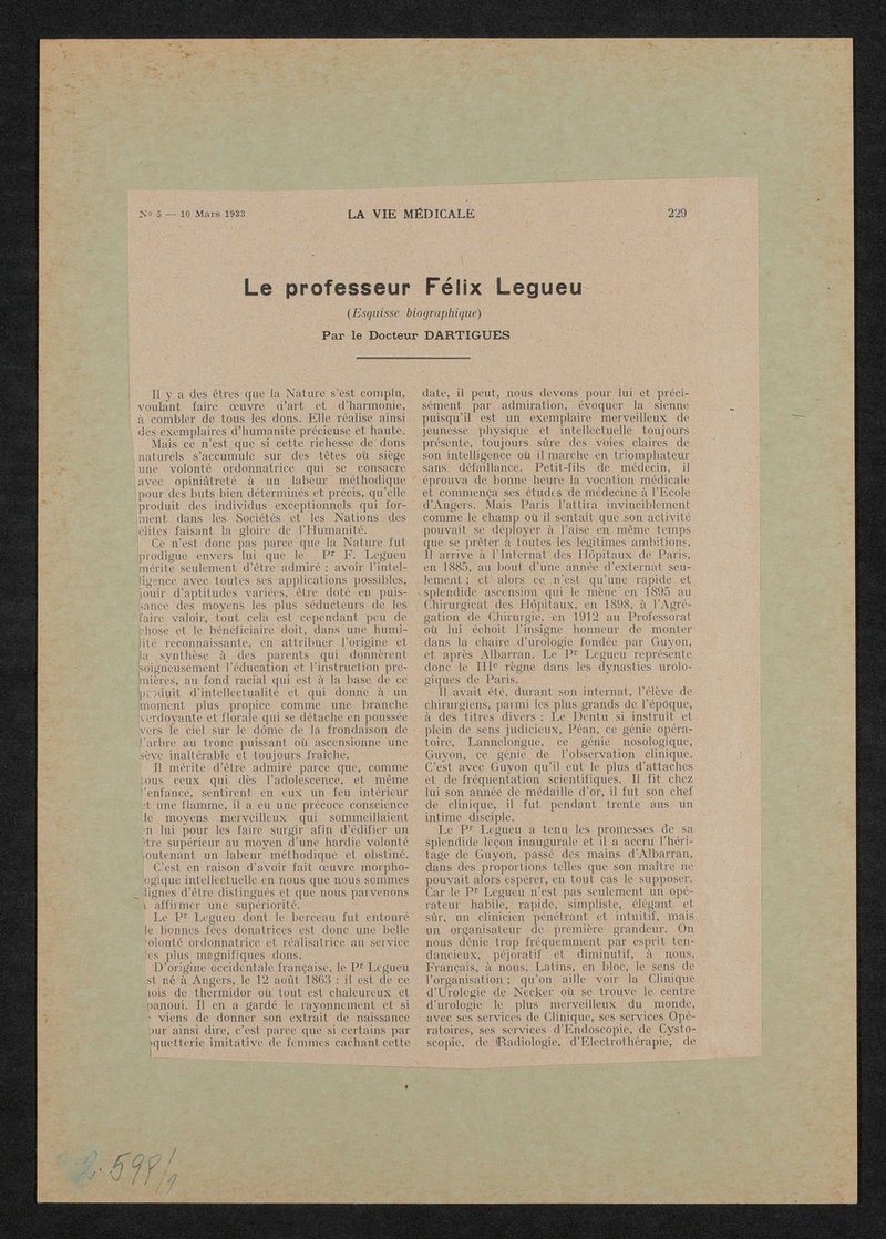 Bild und Bericht sind der französischsprachigen Fachzeitschrift La Vie Medicale, Nr. 5, 1933, S. 229, entnommen worden.