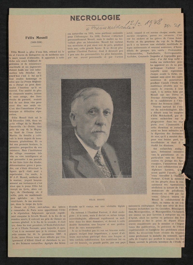 Auszug aus der französischsprachigen Fachzeitschrift La Presse Medicale, Nr. 21, 12. März 1938. Die fotografische Vorlage stammte aus dem Fotostudio Harcourt.
