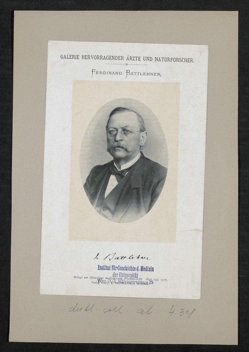 Auszug aus: Galerie hervorragender Ärzte und Naturforscher, in: Beilage zur Münchener medizinischen Wochenschrift, 1907, Bl. 199. Das Bild wurde von Julius Friedrich Lehmann, München, verlegt.