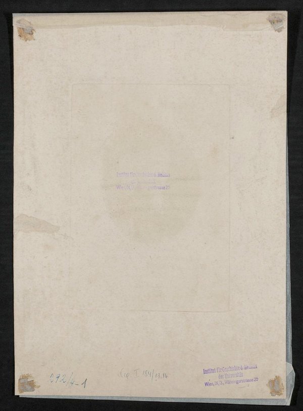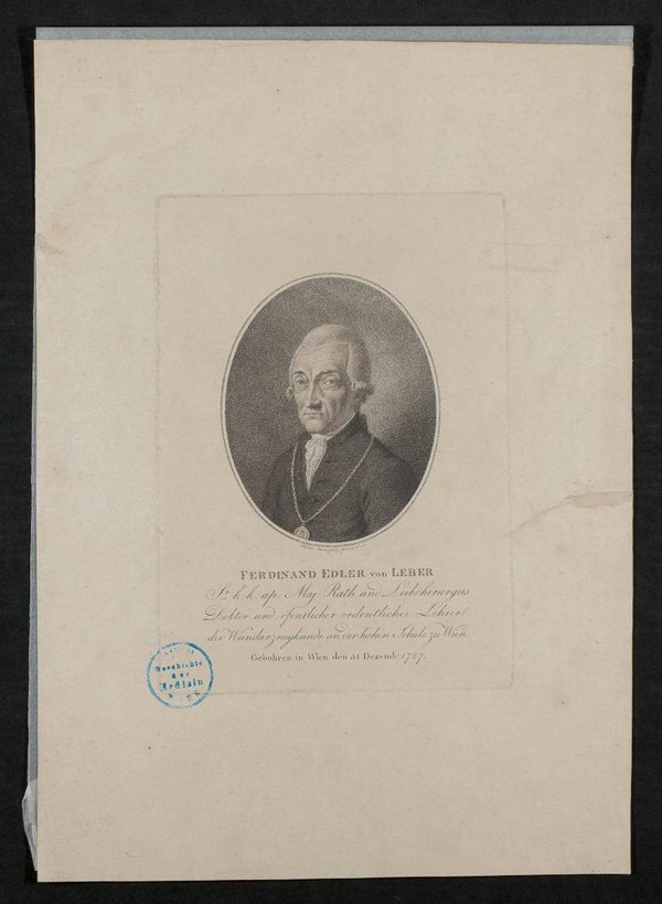 Der Kupferstich wurde von Heinrich Joseph Mansfeld angefertigt. Vorder- und rückseitig befinden sich Stempel vom Institut für Geschichte der Medizin, Wien. Neg I 184/13, 14