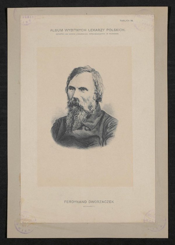 Die Lithografie wurde nach einem Stich von A. Regulski angefertigt. Auszug aus: Album Wybitnych Lekarzy Polskich, Posen 1904, Tafel 28. Vorderseitig mit vier Stempeln des Instituts für Geschichte der Medizin, Wien, versehen.
