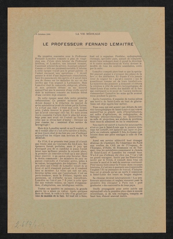 Die Abbildung ist der Zeitschrift La Vie Medicale, 25. Oktober 1931, entnommen worden. Die Vorlage wurde von Henri Manuel angefertigt.