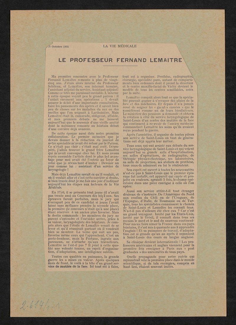 Die Abbildung ist der Zeitschrift La Vie Medicale, 25. Oktober 1931, entnommen worden. Die Vorlage wurde von Henri Manuel angefertigt.