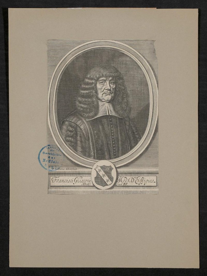 Zeichnung und Lithografie wurden von William Faithorne angefertigt. Auf der Vorderseite befindet sich ein Stempel des Instituts für Geschichte der Medizin. Neg. I. 275/13,14