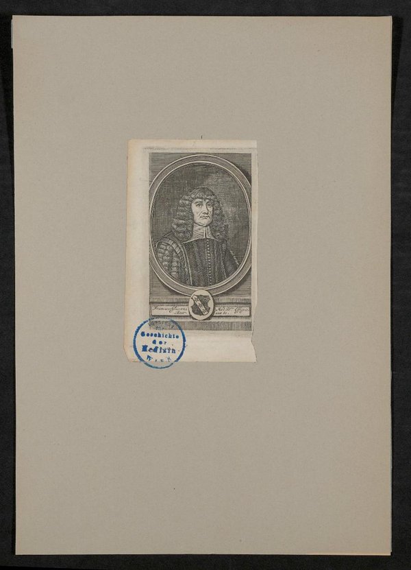 Zeichnung und Lithografie wurden von William Faithorne angefertigt. Auf der Vorderseite befindet sich ein Stempel des Instituts für Geschichte der Medizin. Neg. I. 275/13,14