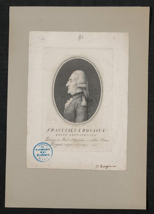 Mit unleserlicher Namensnennung am rechten unteren Bildrand und einem Stempel des Instituts für Geschichte der Medizin, Wien, versehen.
