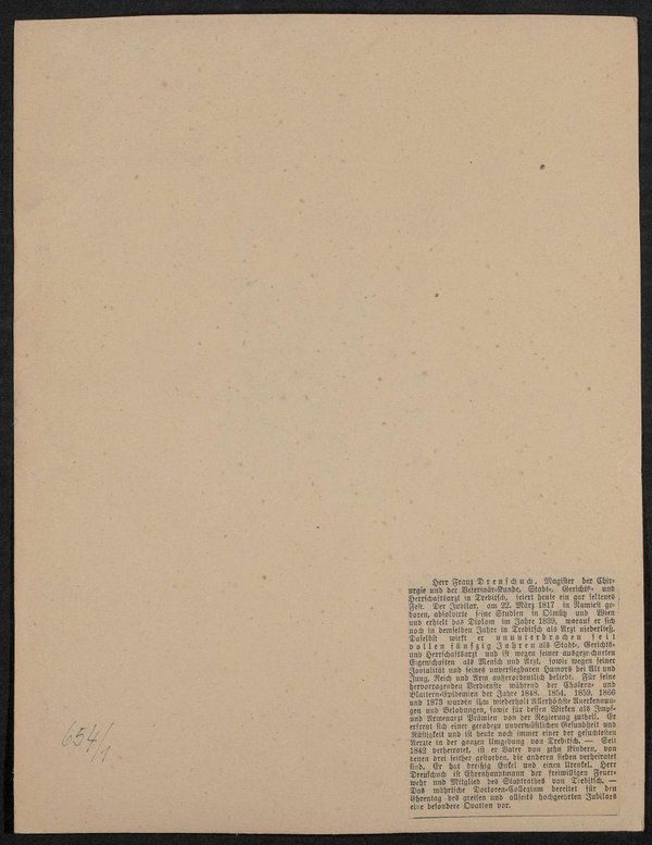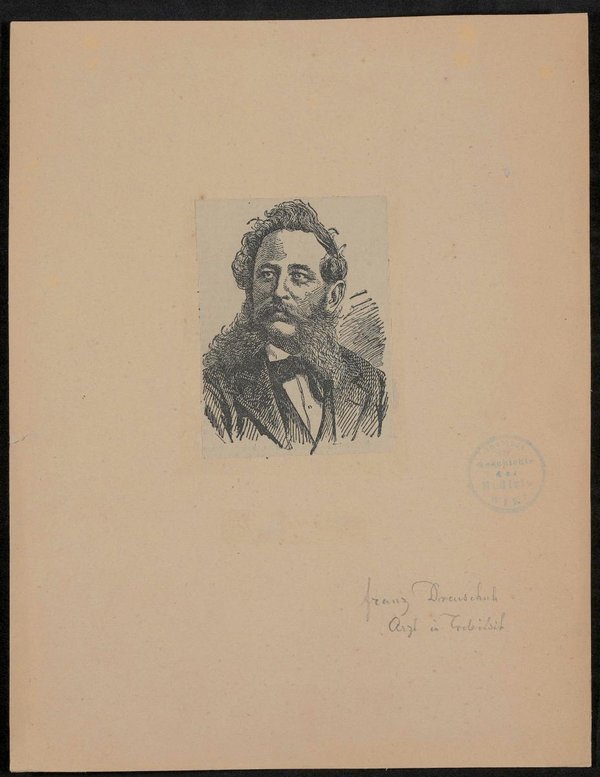 Die Vorlage des Bildes war eine Zeichnung. Neben dem Bild befindet sich ein Stempel des Institutes für Geschichte der Medizin, Wien. Der Text des Zeitungsausschnittes befindet sich auf der Rückseite.