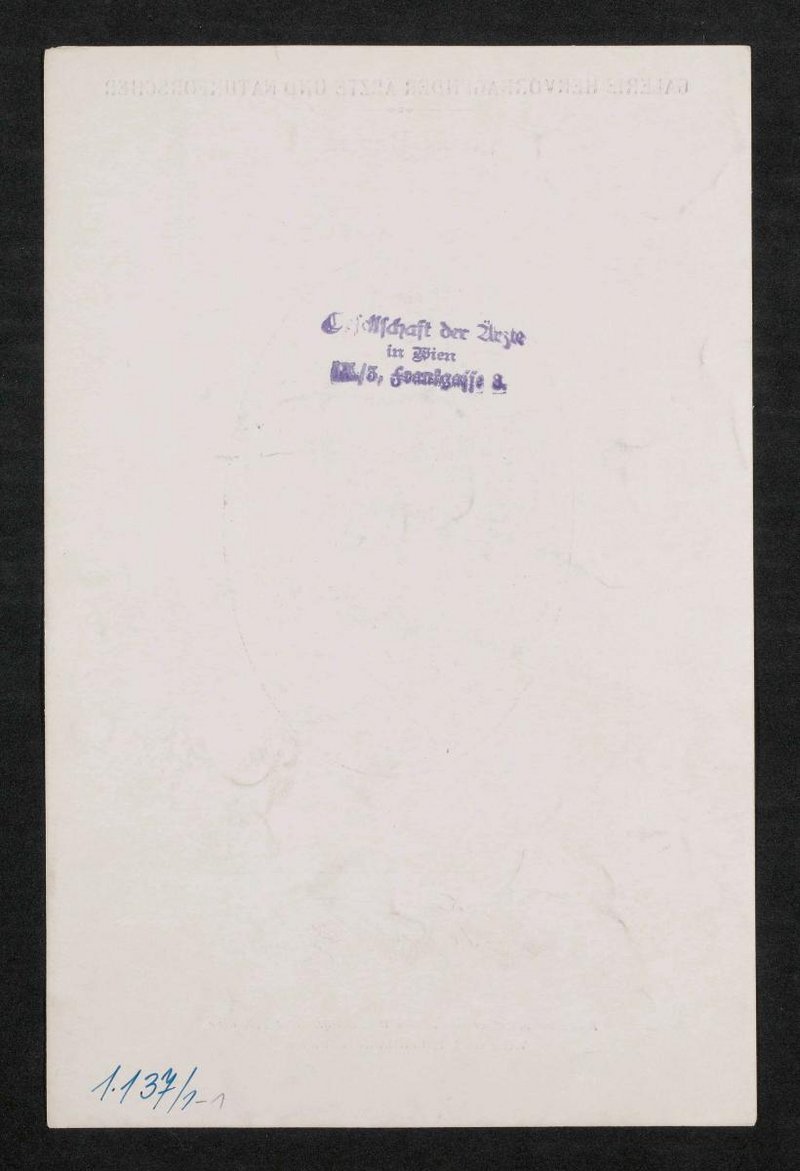Auszug aus: Galerie hervorragender Ärzte und Naturforscher, in: Beilage zur Münchener medizinischen Wochenschrift, 1930, Bl. 448. Rückseitig mit einem Stempel der Gesellschaft der Ärzte, Wien, versehen.
