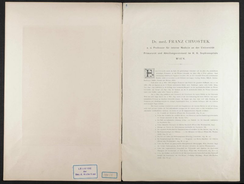 Die Abbildung ist eine Leihgabe der Gesellschaft der Ärzte. Herausgegeben vom Adolf Eckstein Verlag, Berlin. Neg. III 54/8