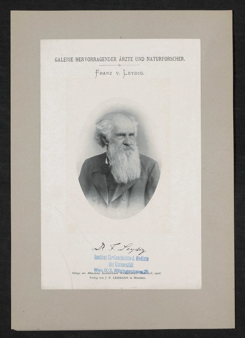 Auszug aus: Galerie hervorragender Ärzte und Naturforscher, in: Beilage zur Münchener medizinischen Wochenschrift, 1908, Bl. 228. Das Bild wurde von Julius Friedrich Lehmann verlegt. Auf der Vorderseite befindet sich ein Stempel des Instituts für Geschichte der Medizin der Universität Wien.