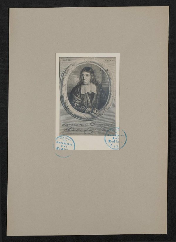 Dem Bild lag ein Kupferstich von Pieter Stevens van Gunst, 1694, als Vorlage zugrunde. Vorderseitig mit zwei Stempeln des Institutes für Geschichte der Medizin, Wien, versehen.