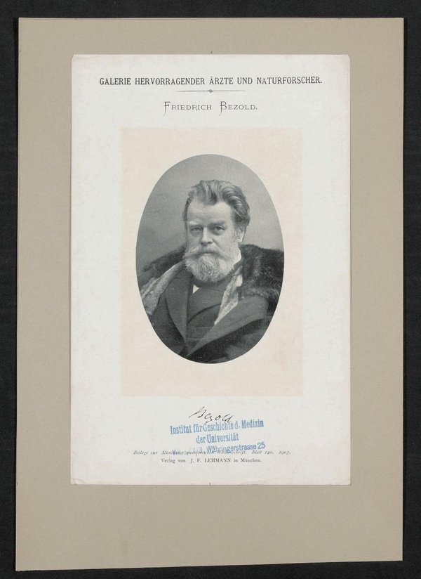 Auszug aus: Galerie hervorragender Ärzte und Naturforscher, in: Beilage zur Münchener medizinischen Wochenschrift, 1903, Bl. 140. Unter dem Bild befindet sich ein Stempel des Institutes für Geschichte der Medizin, Wien.