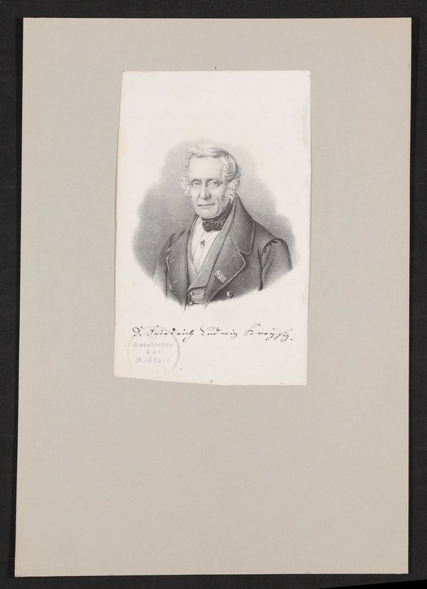 Das Bild ist auf Stein gezeichnet und bei Franz Hanfstaengl, Dresden, gedruckt worden. Vorderseitig mit einem Stempel des Instituts für Geschichte der Medizin, Wien, versehen.